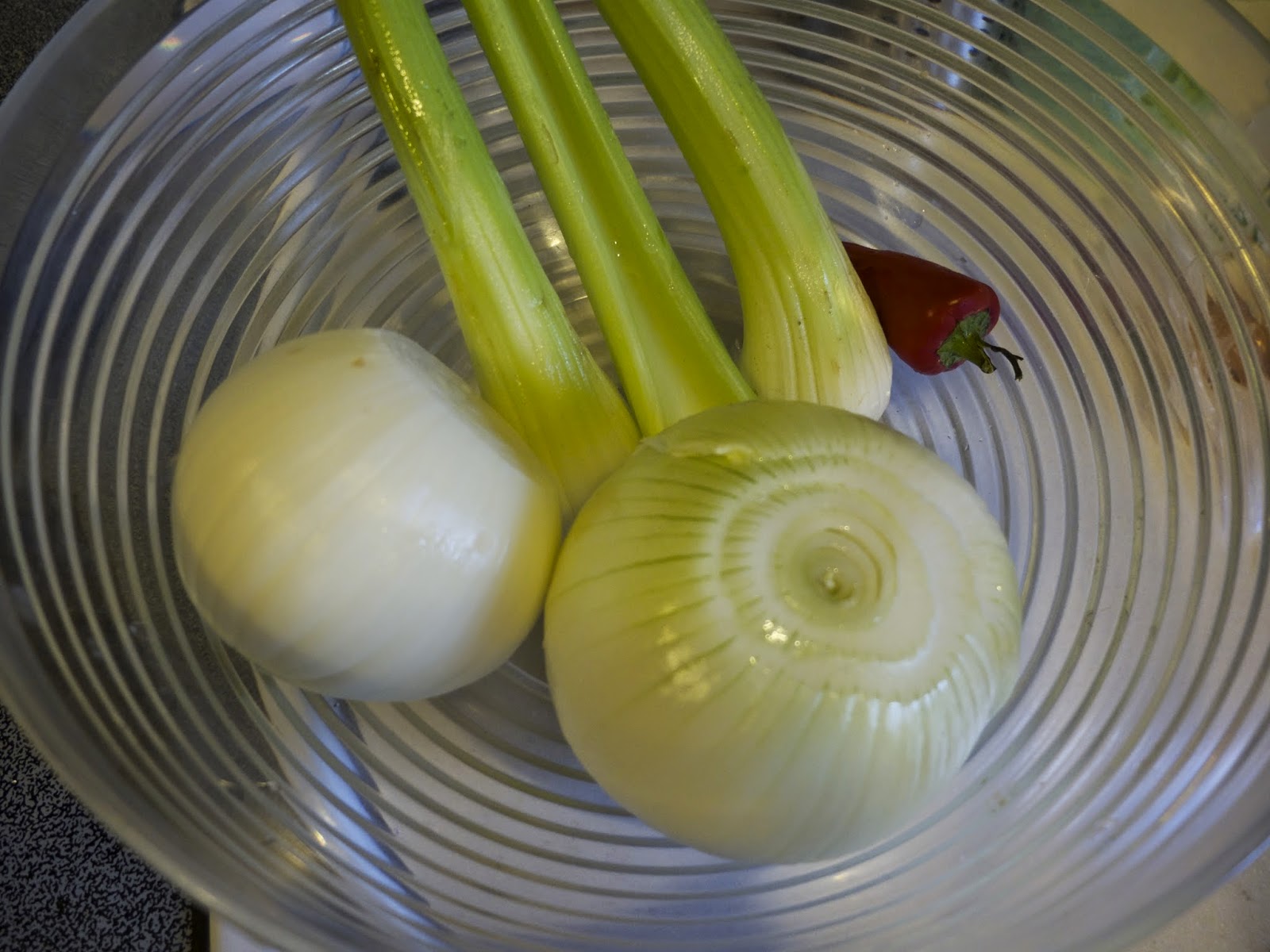 – Cắt lát ớt sừng. Cắt củ hành làm 8 vừa miệng ăn. Cần tây Celery xắt khúc 1,5cm. Cho tất cả vào keo
