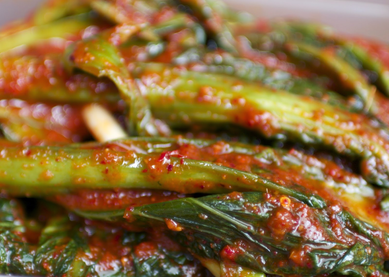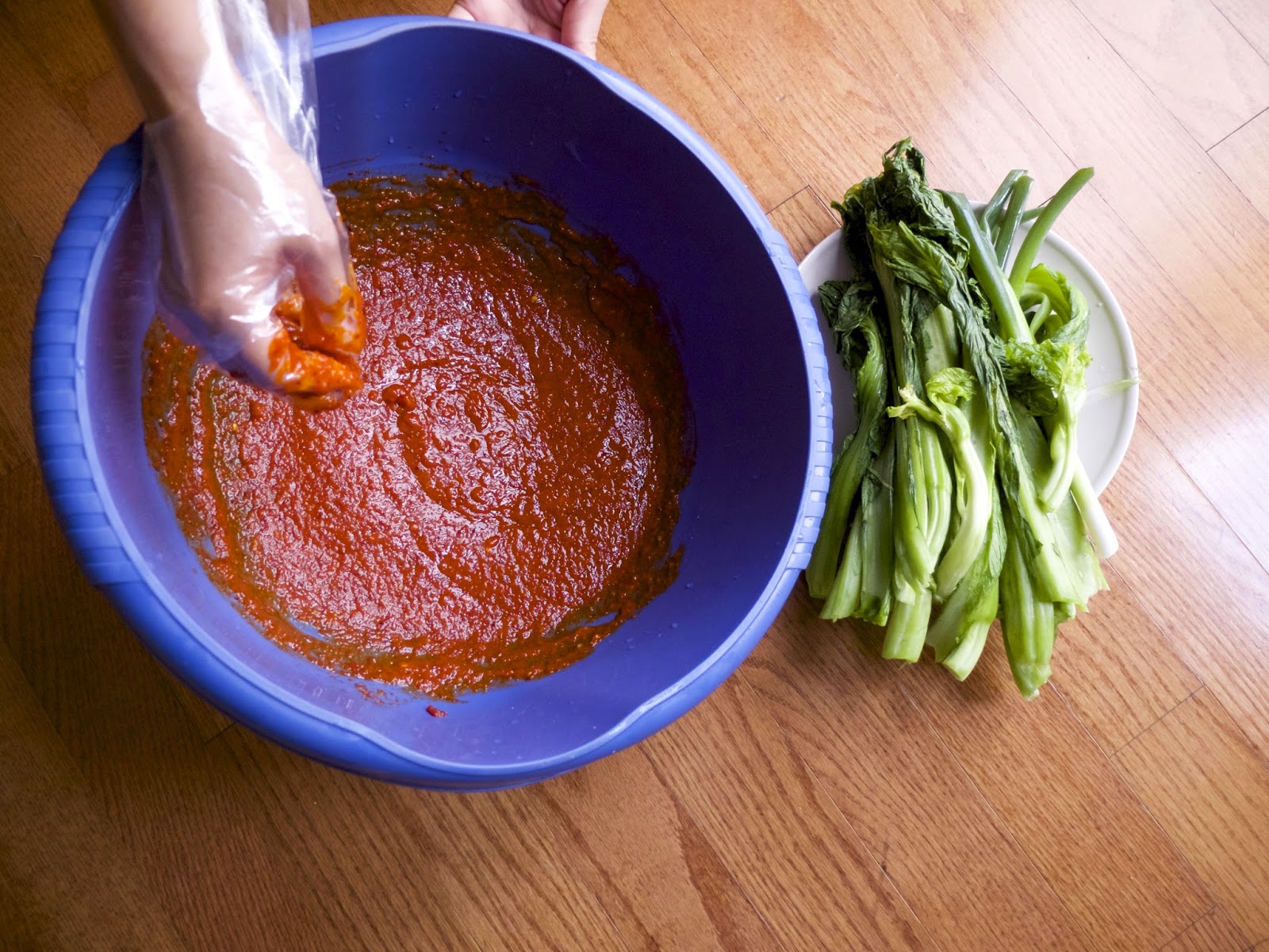Lần đầu tiên ăn món Kimchi cải bẹ xanh này, Ông xã “hù” trước là hơi khó ăn. Ngay cả nhiều người Hàn Quốc không ăn được vì vị nồng, nhẫn nhẫn. Khi ăn thử mình nhận ra vị quen thuộc cải bẹ xanh, thế là mình thích ngây từ đầu món này. Mẹ chồng không ăn được món này nên hiếm khi làm. Mình phải tự lên mạng mày mò công thức . Thực ra nguyên vật liệu cho món Kimchi cải bẹ xanh này cũng giống như Kimchi Cải thảo, chỉ có công đoạn muối dưa chỉ cần muối trong vòng 2-3 tiếng đồng hồ thôi.