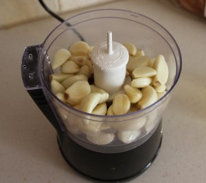 Cho tỏi vào máy, xay tốc độ chậm hoặc vừa vừa.