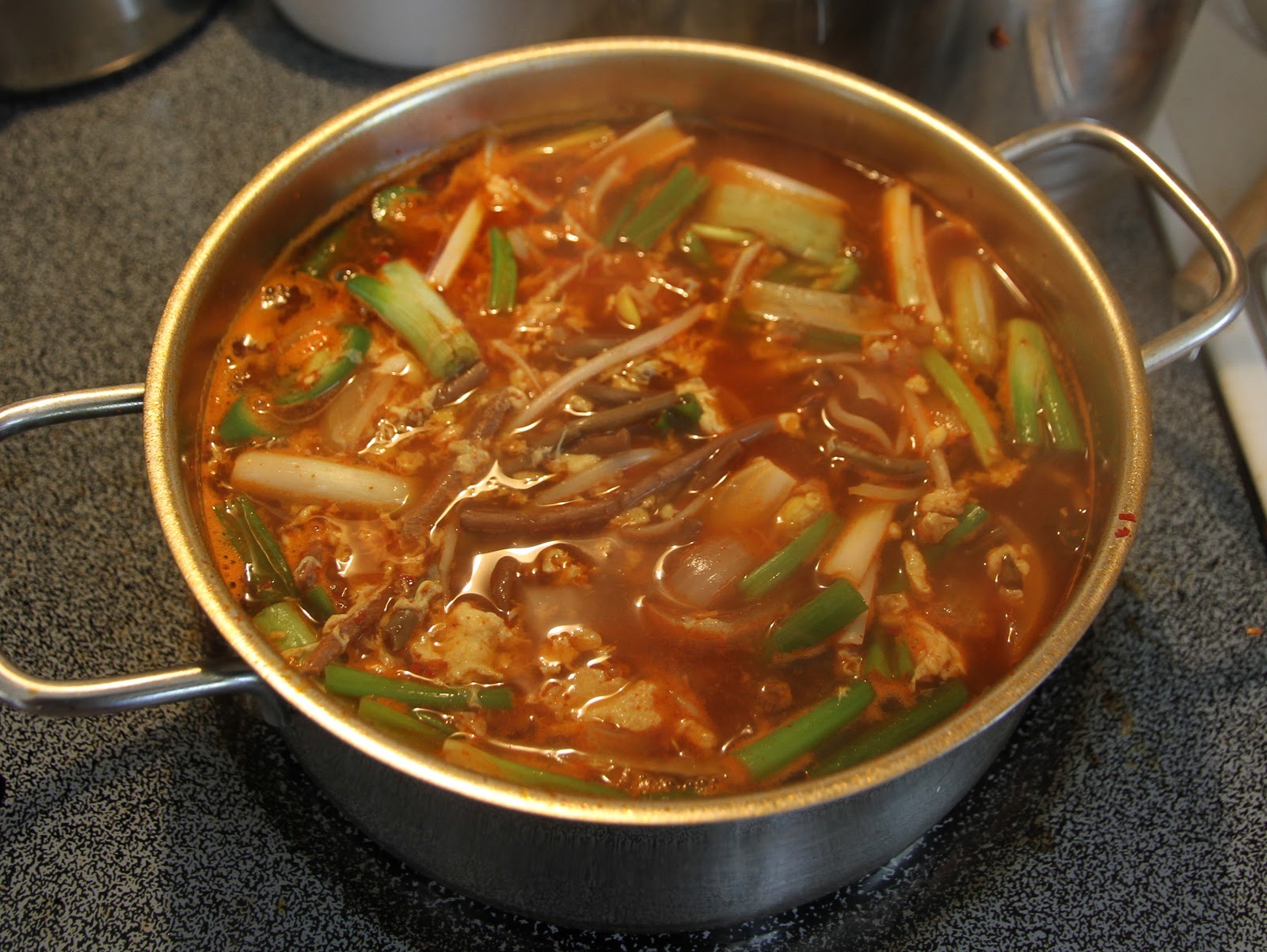 Món canh này P mới nấu hôm Noel cho Ông xã và vài ông bạn nhậu khuya với rượu Soju. Còn dư sáng hôm sau mấy ổng ăn sáng với cơm trắng. Mấy ổng khen ngon ơi là ngon, ngon hơn cả ở HQ làm mình cũng muốn nức mũi. Bạn nào lần đầu nấu món này xin cứ y như công thức mà làm, xin không gia giảm thêm bớt gia vị, sẽ bị lạc mùi ngay.