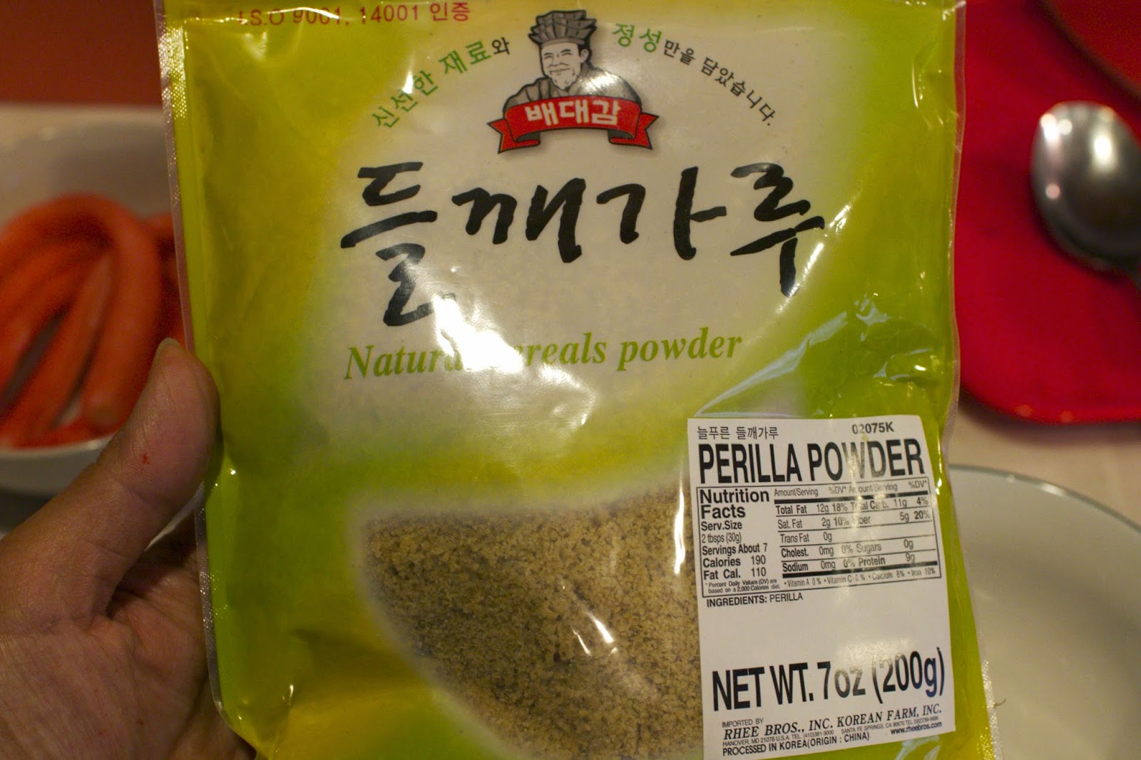 Bạn nào ở Vn chắc khó tìm được nguyên vật liệu cho món này. Vì ta sẽ cần một loaị bột mè đặc trưng cho món này là 들깨가루 Perilla Powder. Không có nguyên liệu này ta sẽ hoàn taòn không làm ra món canh này.