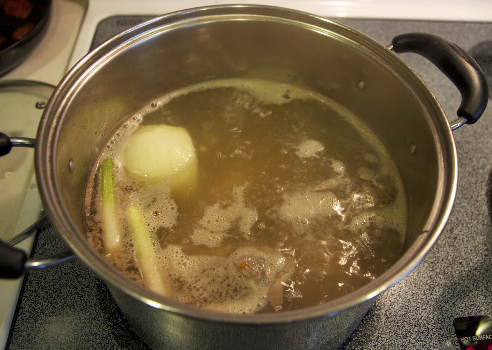 Luộc lửa vừa ,mở nắp, thường xuyên hớt bọt trong vòng 20 phút . Khi nước lèo hết bọt dơ thì đập nắp, vặn lửa riêu riêu hầm xương trong vòng 2 tiếng.