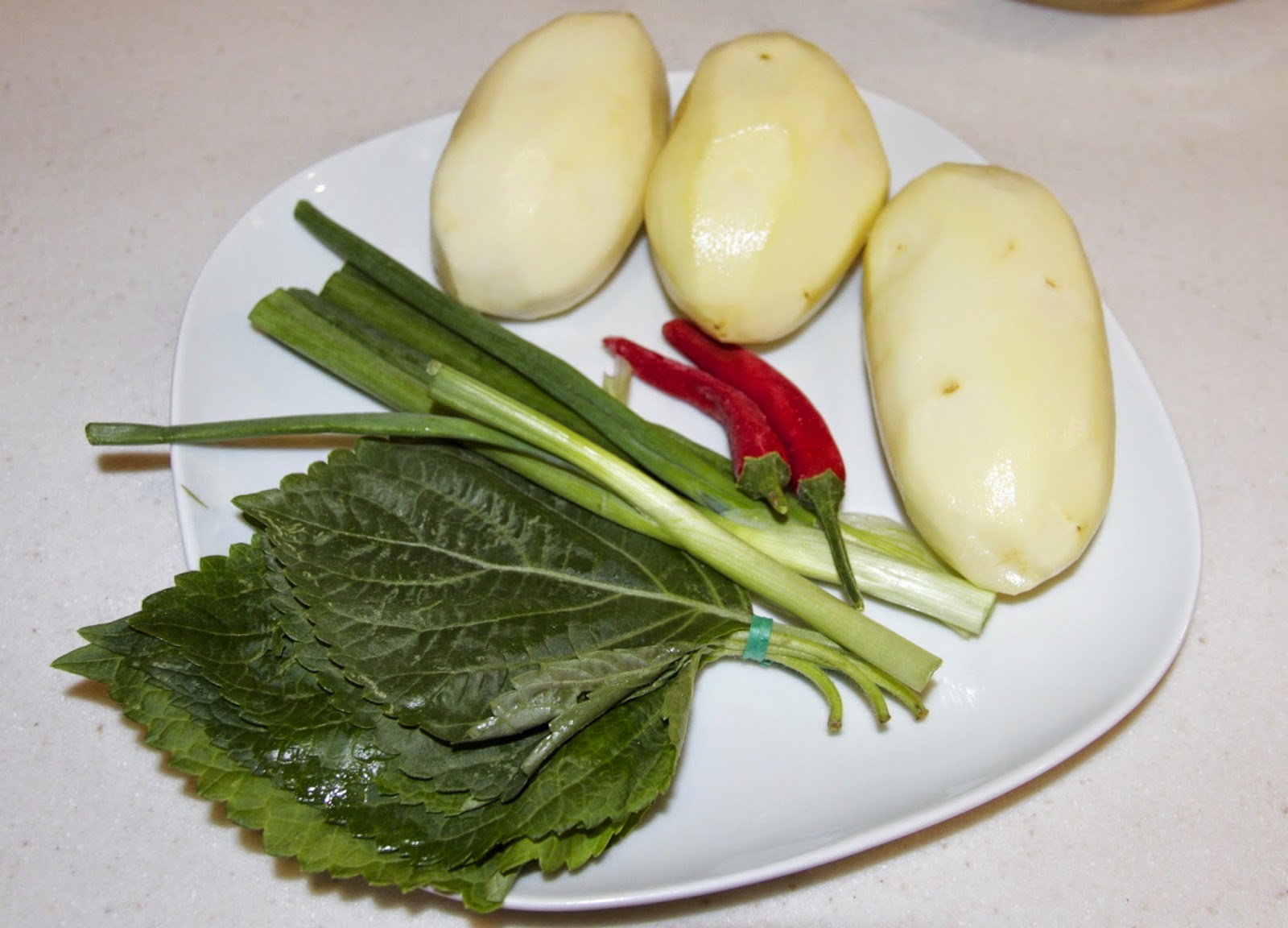 – 5 lá GenNhip 깼잎 Perilla leaves (hình như là cùng một họ với rau tía tô của người việt mình)